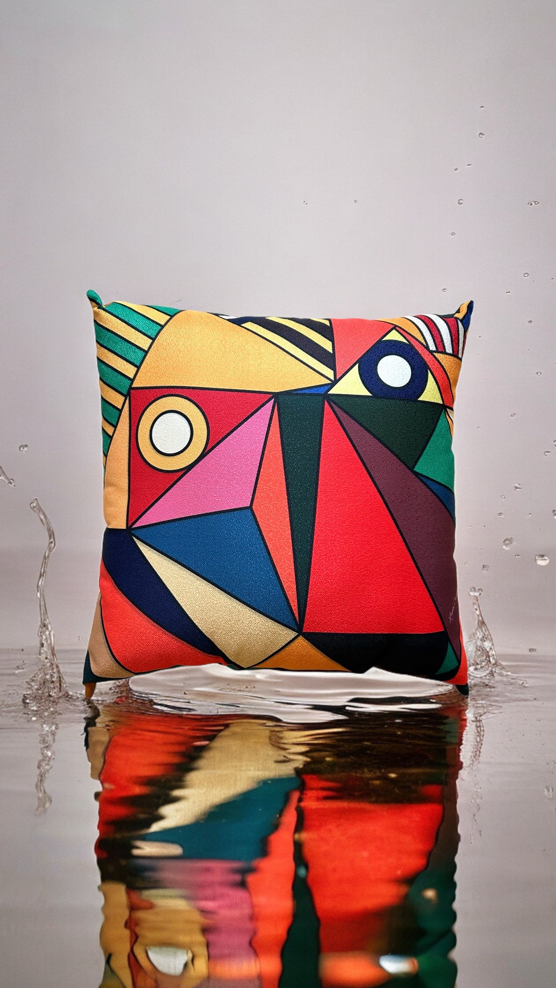 Enhance your home with this stunning Lion Art Pillow. Measuring 20" x 20", it features a captivating cubism lion design. Add a touch of art and sophistication to your living space.